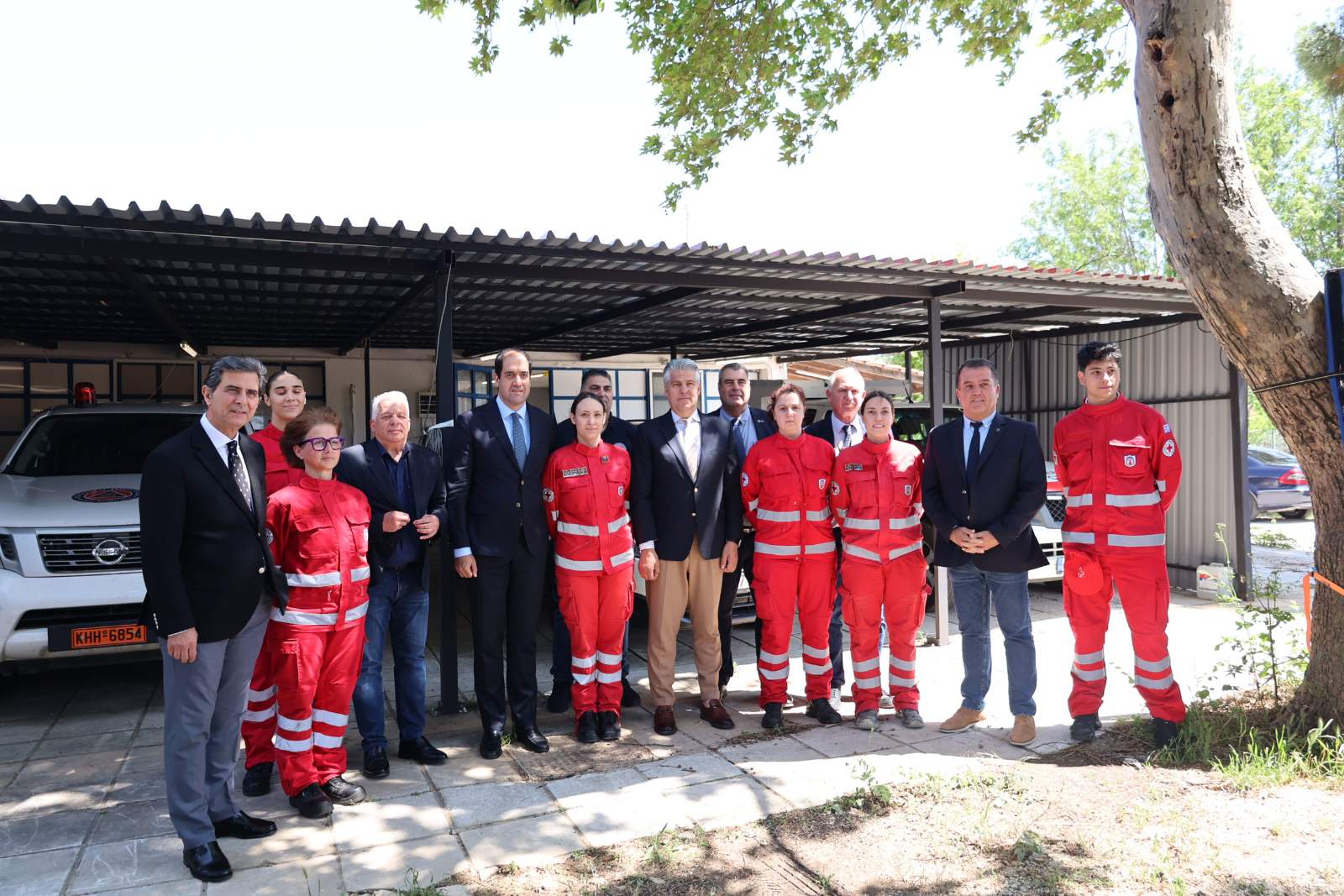 Toplantının ardından, toplantıya katılan Kızılhaç gönüllülerinin daveti üzerine, Gümülcine’nin Trilofo bölgesindeki Kızılhaç Operasyon Merkezine ziyaret gerçekleştirildi. İklim Krizi ve Sivil Koruma Bakanı Sayın Kefalogiannis, İçişleri Bakan Yardımcısı Sayın Gioulekas ve Bölge Valisi Sayın Topsidis, tesisleri gezdi ve gönüllülerin eğitimi ile mevcut ekipman hakkında bilgi aldı. Gönüllülerin faaliyetleri ve katkılarından dolayı takdirlerini sundular ve merkezin desteklenme olanaklarını görüştüler.